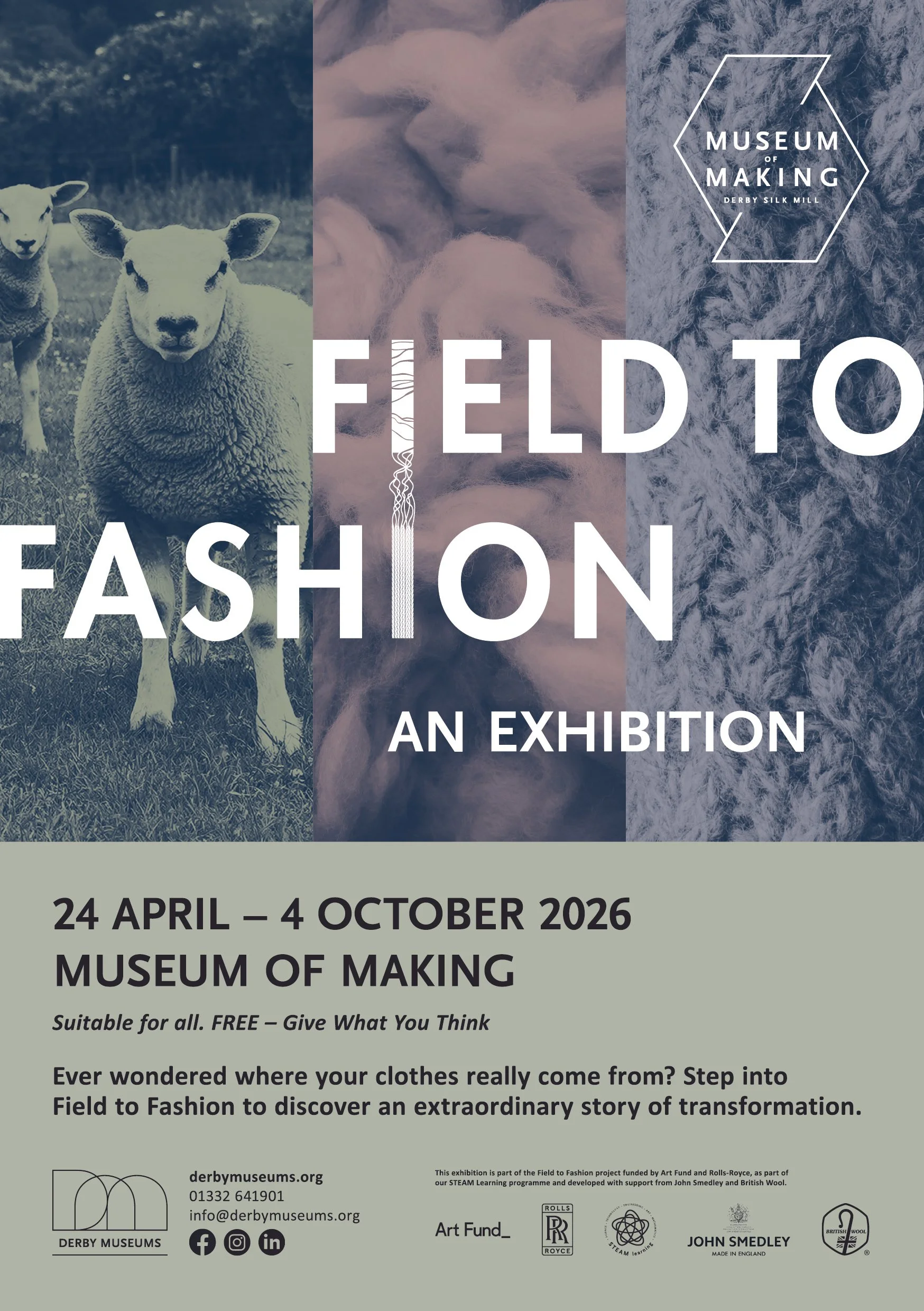 Field to Fashion at the Museum of Making is a brilliantly curated exhibition, supported by John Smedley, tracing wool from field to fibre to garment. It brings together farmers, makers, students, and industry to reveal the real material journey behind what we wear—and live with.